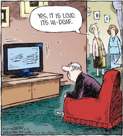 4.) This political cartoon has a play on the word High Def or HD. The older man in the picture can be seen trying to really understand what is happening on the TV. Since the TV is most likely loud, its volume is loud for those who may have a harder time hearing the audio from the television. This cartoon shows that sometimes a disability can occur from an older age.